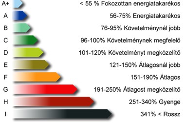megmutatja, hogy milyen szintű az adott épület energiahatékonysága.